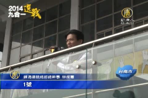 台南市長候選人賴清德競總部總幹事 林俊憲:「1號,孕育一任市長,一定高票當選,連任成功。」