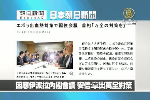 【新唐人亞太台2014年10月29日訊】來看到日本朝日新聞報導: 因應伊波拉內閣會議,安倍:拿出萬全對策。