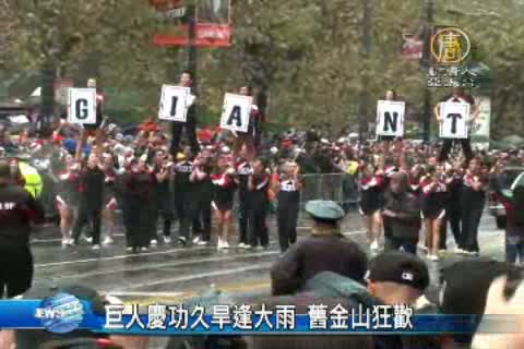 【新唐人亞太台2014年11月1日訊】五年內第三次贏得MLB世界大賽冠軍的巨人隊,10月31號在舊金山進行遊行。眾多粉絲冒著久違的大雨迎接巨人隊的凱旋歸來。