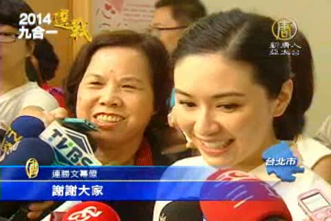 【新唐人亞太台2014年11月1日訊】選戰進入倒數階段,台北市長選戰,國民黨候選人連勝文,今天打出了夫人牌,太太蔡依珊跑到從小長大的天母士東市場拜票,爸爸媽媽更號召30多位親友團一起掃街。