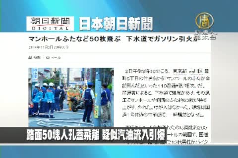 【新唐人亞太台2014年11月3日訊】來看到日本朝日新聞報導: 星期天下午,東京品川區路面上的人孔蓋突然飛離。根據消防署的說法,是因為下水道爆炸造成的風壓導致,爆炸原因仍在調查。