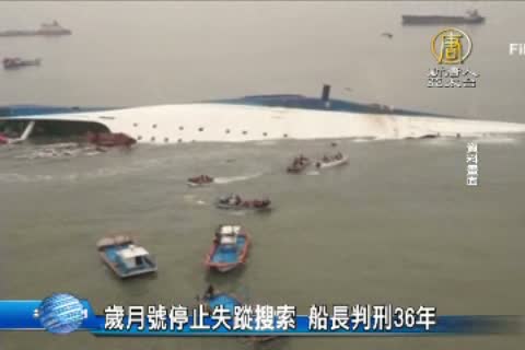 【新唐人亞太台2014年11月11日訊】今年4月,南韓歲月號沈船,奪走超過300條人命,仍有九人失蹤尚未尋獲。今天判決出爐,歲月號船長躲過死刑,被處36年有期徒刑。另外,為安全考量,南韓當局決定,中止長達2百多天的失蹤著搜索行動。