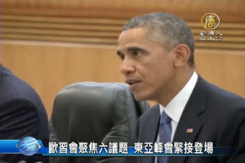 【新唐人亞太台2014年11月12日訊】今天登場的歐習會,雙方首先就限制溫室氣體排放達成協議,另外,也聚焦在經濟、區域安全、網路安全、伊朗核問題等六大議題進行意見交換。歐巴馬也明確表達美方關切,中國大陸的駭客行為造成美國企業的智慧財產權益受損等網路安全問題,以及全球議題如伊波拉和伊斯蘭國(IS)。由於今明兩天,東亞峰會在緬甸首都 內比都舉行,美國總統歐巴馬、中共國務院總理李克強以及日本首相安倍晉三等18國領導人也將出席會議,預料,南海問題到伊波拉疫情等當前重大議題,將是討論重點。