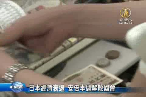 【新唐人亞太台2014年11月18日訊】再來帶您關心,日本經濟連兩季衰退,第3季的經濟成長,比去年同期衰退1.6%,顯示消費稅的調漲對日本經濟造成嚴重打擊。日本首相安倍晉三,將會在本周解散國會,並在12月進行大選,以獲取民意支持,推遲明年10月調漲消費稅的計畫。