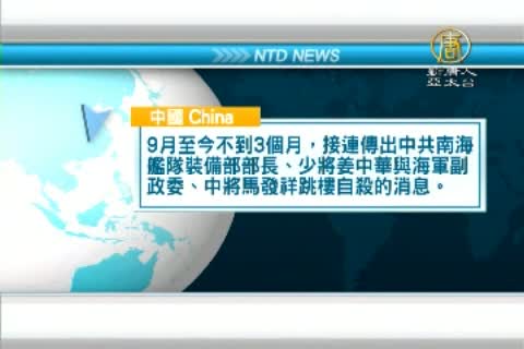 9月至今不到3個月,接連傳出中共南海艦隊裝備部部長、少將姜中華與海軍副政委、中將馬發祥跳樓自殺的消息。