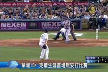 2014-06-19 21:38:38來看到美國職棒大聯盟的賽況。二屆賽揚獎得主,史上最高薪投手克蕭,投出代表作。不但創下生涯新高的單場15次三振,更投出個人第1場、道奇隊史的第12場無安打比賽,幫助道奇以8比0完封洛磯隊。