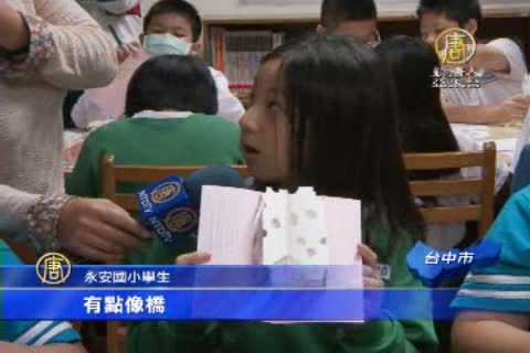 【新唐人亞太台2014年11月18日訊】台中國家歌劇院將在11月23日落成,今天( 18日)西屯區永安國小,50多名五年級學童DIY歌劇院立體卡片,還將歌劇院彩繪成的更多色彩,展現豐富創意。