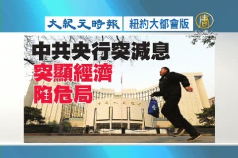 接著看到大紀元時報紐約大都會版報導:中國央行突減息,突顯經濟現危局。我們稍後會有更進一步的報導。