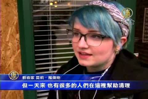 藝術家莫莉‧羅傑斯:「很多人都目睹了示威造成的大量破壞。但一天來,也有很多的人們在這裡幫助清理,大家在一起,彼此關愛。」