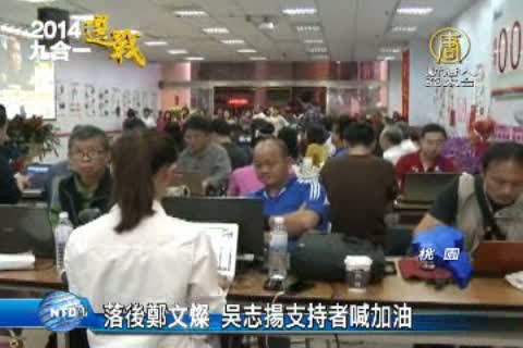 【新唐人亞太台2014年11月29日訊】桃園選戰,來看到國民黨吳志揚總部,目前票開出來,持續落後民進黨鄭文燦有一段不小的距離,總部現場有民眾高喊吳志揚加油。