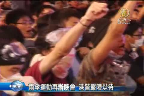 【新唐人亞太台2014年11月30日訊】香港雨傘運動,學聯及學民思潮今晚(30日)六點在金鐘占領區舉辦晚會,晚會以「毋忘初衷,全民抗命」為主題,他們也提醒參加者配戴口罩、眼罩、頭盔和雨傘等防護裝備。消息指出,香港警方為此增加香港 1/4 警力,將部署3700名警力戒備。