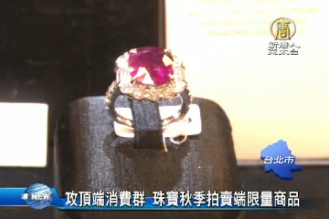 【新唐人亞太台2014年12月1日訊】受到景氣影響,象徵高貴珠寶市場也呈現兩極化,大克拉數10克拉以上的寶石,產量減少了,也帶來增值效應,看準台灣金字塔頂端消費潛力,業者準備超過1百件、拍賣總金額4億5千萬的限量珠寶,要在景氣低迷中,開出紅盤。
