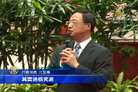 行政院長 江宜樺:「我要向大家報告的是,我會好好的休息,我會盡量多用一些時間,陪我的家人。未來怎麼樣能夠幫助更多需要幫助的人,會是我念茲在茲的一件事情,那麼我們做這些事情,其實追根究底,是希望我們共同所愛的,這個國家跟這塊土地能夠更好,我相信在場沒有一個人,是希望台灣變得更糟糕,所以不管我們用的是什麼樣的方法,走的是什麼樣的途徑,我們一定要彼此提醒自己,盡量讓這一種,為了台灣好的正向的力量,能夠充分的發揮出來。」