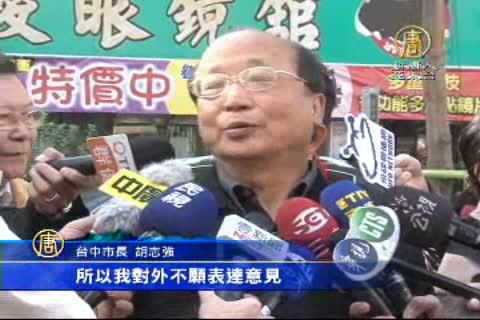 台中市長胡志強:「他(郝龍斌)的態度好像一貫如此吧,是不是一貫如此,我不太清楚,我的意見憑良心講,在黨內都表達過了,我不會對外講,好不好,很多事情我在黨內表達過了意見之後,就要尊重他們去決定,所以我對外不願表達意見。有的話應該是對內講,不是對外講。我做一個國民黨員和黨職幹部,該做什麼事我都會做。」