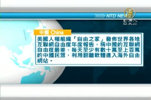 美國人權組織「自由之家」發佈世界各地互聯網自由度年度報告,稱中國的互聯網自由度最差,每天至少有數十萬至上百萬的中國民眾,利用翻牆軟體進入海外自由網站。