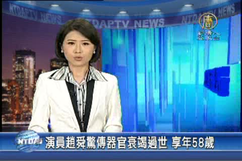 【新唐人亞太台2014年12月10日訊】來看到稍早收到的不幸消息,58歲資深演員趙舜今天傳出過世的噩耗。資深藝人趙舜5年3度中風,但他面對病況積極樂觀,有糖尿病史的他,先後心臟開刀、也洗腎多時,這兩年都以輪椅代步。今天他被送到急診室時,院方已經發出病危通知,而8點間,因為多重器官衰竭辭世,享年58歲。