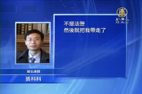 湖北律師 張科科:「辯論的時候,我當時就回應檢察院的意見,我說這個思想不能夠算犯罪,憲法和法律保障公民的信仰自由,然後這個法官就非常惱火,我又繼續辯護,審判長突然說把我帶走,然後示意旁邊的警察,是公安局的警察,不是法警,然後就把我帶走了。」