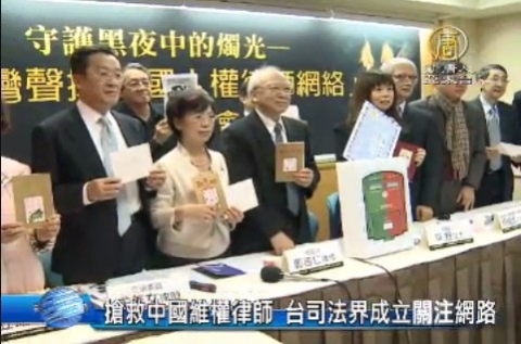 鎂光燈下,台灣多位知名律師、作家與教授,寄送卡片給中國維權律師,並宣布成立「台灣聲援中國人權律師網路」,要求中共,停止迫害維權律師。