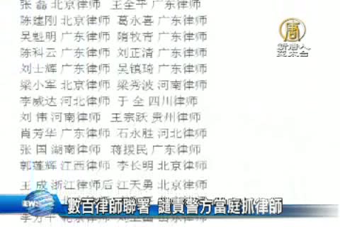 【新唐人亞太台2014年12月13日訊】大陸律師界日前發起聯署行動,譴責吉林遼源市西安區法院,指使警察當庭帶走辯護律師張科科,目前參與簽名的人數已經超過3百人。律師們表示,吉林警方的這個舉動開了極其惡劣和危險的先例,是對大陸律師制度的巨大破壞,相關責任人應該受到刑事和行政責任的追究。