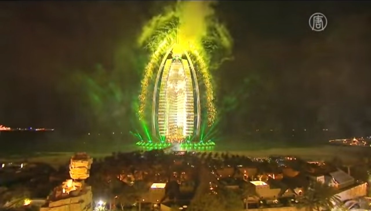 【新唐人亞太台 2014 年 12 月 14 日訊】今年是阿拉伯聯合大公國成立第43週年,也是杜拜著名地標帆船飯店開幕15週年。在國慶日前夕,杜拜舉辦了一場令人讚嘆的晚會,除了多元的舞台表演與燦爛的海岸煙火外,更融合帆船飯店的建築特色,打造3D立體光雕秀,以豐富的聲光旅程,帶領觀眾享受國慶的歡樂氣氛。