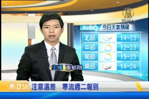 【新唐人亞太台2014年12月15日訊】歡迎您收看12月15日的早安新唐人,我是甯郁翔。先來帶您關心今天的天氣情況。帶您一起來看到國際媒體重要訊息。