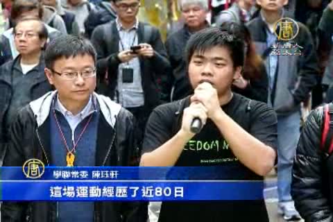 學聯常委 陳?軒:「這場運動經歷了近80日,但是我們對真普選的追求不會放棄,即使警察今天清了場,未來的抗爭場合相信會再見面,我們會繼續以不同的方式向政府爭取一個真正的普選。」