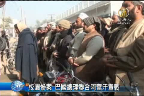【新唐人亞太台2014年12月18日訊】造成100多位學生慘死的巴基斯坦校園屠殺案,引發國際震驚。巴基斯坦總理夏立夫說,將和阿富汗,以及國際安全援助部隊合作,消滅恐怖份子。