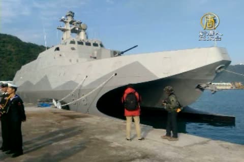 【新唐人亞太台2014年12月23日訊】鏡頭轉回台灣,美國歐巴馬政府剛批准了對台軍售,今天,台灣第一艘自製的,匿蹤飛彈巡邏艦「沱江艦」,正式亮相,移交海軍,首艘沱江艦的建造費用高達9億多元,配置16枚雄風飛彈,是壓制中共解放軍航母戰鬥群的「殺手」級軍艦,也是亞洲最快、火力最強的軍艦。