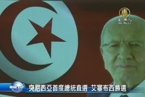 【新唐人亞太台2014年12月23日訊】在茉莉花革命之後,昨天突尼西亞舉辦第一次總統直選,88歲的突尼西亞呼聲黨黨魁艾塞布西,以55.68%的得票率,擊敗現任總統馬佐基,成為第一任民選總統。民眾歡欣鼓舞,慶祝突尼西亞擺脫獨裁,成功地轉變為自由民主的國家。