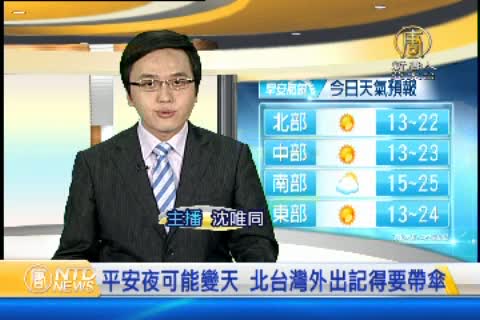 【新唐人亞太台2014年12月24日訊】歡迎您收看12月24日的早安新唐人,我是沈唯同。先來帶您關心今天的天氣情況。帶您一起來看到國際媒體重要訊息。