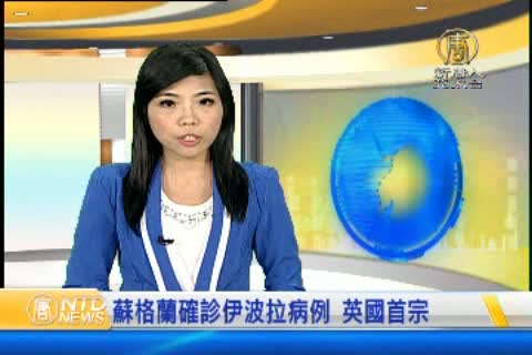 【新唐人亞太台2014年12月30日訊】插播最新消息,蘇格蘭政府證實,當地一名女醫護人員,已經確診出伊波拉病例,這名醫護人員,禮拜天從西非獅子山返國,搭飛機行經 摩洛哥和倫敦機場,目前正接受隔離治療,而當局也正對所有接觸過病患的人,進行檢查。