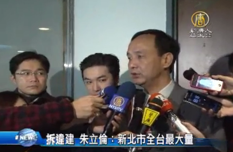 【新唐人亞太台2014年12月31日訊】台北市長柯文哲昨天宣佈「拒關說、強制拆違建」後,新北市長朱立倫也跟進,今天(31日) 朱立倫表示,新北市拆除違建的量,是全台最大,但重點是不要讓新違建產生。