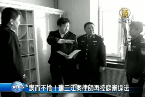 【新唐人亞太台2015年1月2日訊】關心中國人權,引發國際矚目的建三江律師案,2014年最後一天又有新行動,中國維權律師 王宇、張凱等7位律師奔走了一整天,勇於向黑龍江省多個部門,控告建三江法院,在審理法輪功學員案件時的違法行為,上個月,8名辯護律師在庭上,多次遭到建三江當局刁難,有律師還在庭上被法警掐脖子,後來,律師和當事人解除委託關係,以抗議法庭非法庭審,並同時向建三江有關部門提出控告。