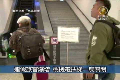 連續4天的元旦假期才剛進入第2天,許多人計畫出國去玩,清晨點6點多,桃園機場突然湧進五萬人次旅客,一航廈差點無法負荷被擠爆,保全為了消化人潮和確保旅客安全,一度封鎖一樓通往三樓的電梯和手扶梯。