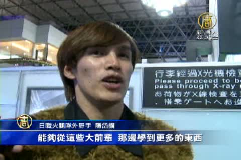 【新唐人亞太台2015年1月3日訊】2015年到來,旅外好手也陸續啟程為新球季備戰,日本職棒火腿隊球星陽岱鋼,昨天晚上啟程赴美自主訓練,之後再飛往日本參加球隊春訓。其實陽岱鋼才剛到泰國進行自主訓練4天,這次也是他首度赴美特訓,展現了在新球季追求更佳戰績的決心。