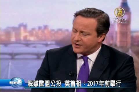 【新唐人亞太台2015年1月5日訊】英國首相卡麥隆星期天表示,如果今年5月大選後 他成功連任,將舉行公投,決定英國是否繼續留在歐盟。卡麥隆之前就說過,最晚將在2017年底舉辦「留歐」公投,但現在改口時間表可能會提前。卡麥隆這個星期將和德國總理梅克爾會面,討論歐洲議題。他強調,雖然他希望英國留在歐盟,但如果條件無法被滿足,「不排除任何可能性」。