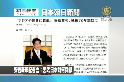 【新唐人亞太台2015年1月6日訊】來看到日本朝日新聞報導: 安倍新年記者會:思考日本如何貢獻。