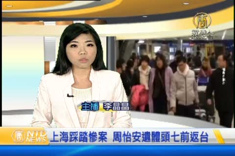 【新唐人亞太台2015年1月6日訊】上海跨年夜人踩人慘案,到今天,1月6號,就期滿七天。針對不幸喪生的台籍民眾周怡安,昨晚6點左右,遺體抵達台灣,隨後運抵台中殯儀館。