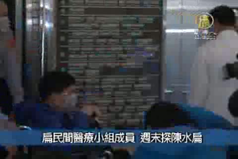 陳前總統保外就醫的第一個週末,扁民間醫療小組成員,來到人文首璽,探望陳前總統,將過去在中監,整整250多頁的醫療資料,完整交給陳水扁,發言人陳昭姿說,陳前總統還特別準備碗粿要請他們吃。