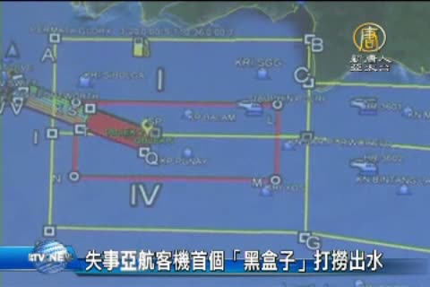 【新唐人亞太台2015年1月12日訊】插播最新消息,據外媒消息,印尼官員說,亞航失事客機的其中1具黑盒子,也就是「飛行資料記錄器」已經尋獲,並從海中打撈起來,目前還在搜尋另1具駕駛艙通話紀錄器。而這個有助於,調查失事原因的關鍵黑盒子,是在爪哇海面下約30公尺處找到的。