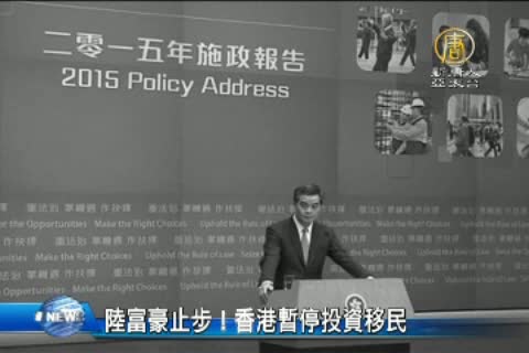 【新唐人亞太台2015年1月15日訊】香港特首梁振英昨天無預警提出,要暫停香港投資移民計劃,目前,九成投資移民香港的人士,都是擁有外國永久居留權的大陸人。過去,只要在香港投資不少於1000萬港元的資金,就會獲得香港居留權,現在計劃喊卡。巴克萊銀行報告指出,中國大陸近一半的富人,考慮在5年內離開大陸,其中三成傾向移居香港。今天午間新聞,我們還會有更完整報導。