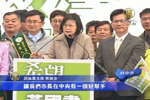 民進黨主席 蔡英文:「讓我們市長在中央有一個好幫手,替我們台中做最大的爭取,多一分民進黨的席次,就多一分改革的力量。」