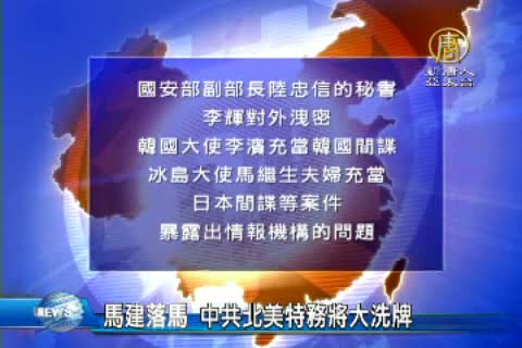 【新唐人亞太台2015年1月19日訊】中共國家安全部副部長馬建最近落馬,外界認為,這是中共開始整肅情報系統的信號。最新消息指出,馬建主管了北美地區的中共情報系統,他的下臺,會對北美的特務系統造成極大的震盪。請看我們的深入報導。