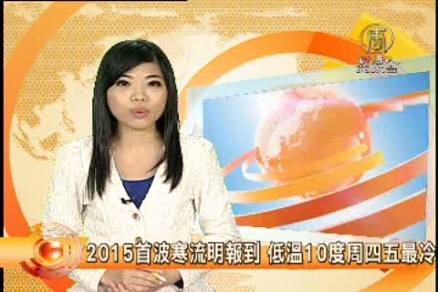 【新唐人亞太台2015年1月20日訊】今年第一波寒流,即將在明天下午報到,預估台北市低溫下探10度,中部以北大約8到9度,南部低溫也只有10度,而週四深夜到週五凌晨,是這波冷空氣最強的時候,全台都能感受到寒意。