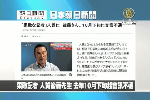 【新唐人亞太台2015年1月21日訊】來看到日本朝日新聞報導:果敢記者 人質後藤先生 去年10月下旬起音訊不通。稍後我們還會有更詳細的報導。