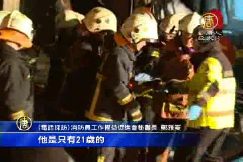 【新唐人亞太台2015年1月21日訊】昨天桃園保齡球館的一場大火,奪走六名年輕警消生命,引發究責,消防局說事件起因是火場「爆燃」,鐵皮屋塌陷才壓死消防員,不過長期關注消防員權益的民間團體批評,追根究柢,還是消防人力不足,設備老舊等制度問題。