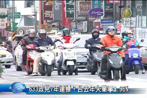 【新唐人亞太台2015年1月22日訊】行政院主計總處今天公布去年12月失業率,為3.79%,較去年11月減少0.1個百分點,是14年來同月最低,而2014年全年平均失業率為3.96%,是馬總統上任7年來,首次跌破4%。主計總處分析,主要是受景氣回溫所致,接下來過年前因為季節性、臨時性工作增加,失業率應會再下降。