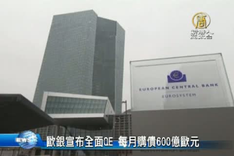 【新唐人亞太台2015年1月23日訊】早報頭條首先來看到,歐洲央行宣布刺激經濟政策,將向疲弱的歐元區注資總額1.3兆歐元,以達成通貨膨脹率接近2%的目標。歐洲央行表示,這項大規模購債行動自3月開始,持續到2016年9月,每月將注資600億歐元,相當於690億美元。而且有可能視情況延長期限。被稱為是歐洲版QE的購債規模遠超乎外界預期。消息發佈後,歐美股市應聲上漲,歐元兌美元則再度貶值。