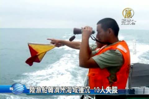 【新唐人亞太台2015年1月23日訊】一艘中國大陸漁船今天凌晨2點半左右,在距離南韓濟州市遮歸島西南方向164公里的公海與一艘不明國籍的商船相撞沉沒,造成大陸漁船上13名人員中10人失蹤。南韓濟州海洋警備安全署,獲知138噸級大陸漁船被撞沉的事故消息後,緊急派遣2艘巡邏艇,在肇事海域搜救,目前已知有3人被救起,10個人下落不明。