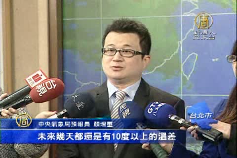 「那未來幾天因為水氣會逐漸增多,在北部地區基本上溫差就會縮小一點,但是在中南部地區,因為天氣不是受很大的影響,所以它的高溫呢,還是都有23到26度左右,低溫呢都還是在12 13度上下,所以整個日夜溫差,未來幾天都還是有10度以上的溫差。」